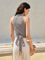 Gingham Halter Wrap Top