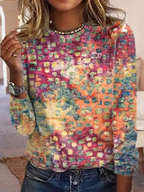 1 × Loose Abstract Long Sleeve Casual T-Shirt