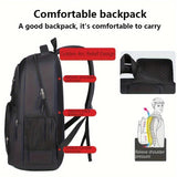 The backpack includes padded shoulder straps and a contoured back panel for long-term comfort. Its ergonomic design evenly distributes weight, reducing strain during extended wear. A rear strap allows the backpack to attach securely to luggage handles, providing added convenience during travel or commuting.