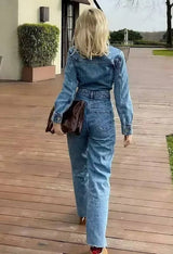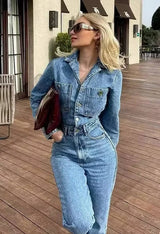 Casual Long Sleeve Denim Jumpsuit for Women