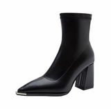 Elegant Pointed Toe Women’s Ankle Boots with Back Zipper and Square High Heel