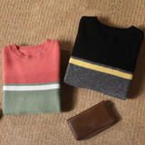 Men's 100% Merino Wool Sweater with Contrast Panel Design