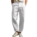 The lightweight linen and cotton blend delivers breathability and softness while the straight leg cut ensures ease of movement. A flexible waistband and classic pocket design combine practicality with refined simplicity for everyday wear.