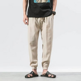 Men's Cotton Linen Casual Pants, Relaxed Fit Harem Trousers with Cuffed Ankle