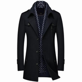 Men's Mid-Length Wool Blend Winter Coat with Scarf Collar, Padded Warm Overcoat M–5XL