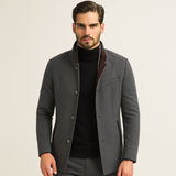 Imagine… stepping outside on a chilly day with a thin jacket that leaves you shivering. This wool blend overcoat creates a refined layer of warmth so you can face crisp fall mornings and winter nights in comfort and confidence.