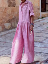 Plaid Wide Leg Lapel Jumpsuit for Women — Effortless Style in One Piece
