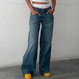 Retro Washed Mid Waisted Straight Leg Jeans for Women