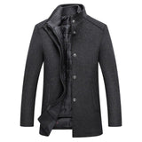 That's not all. Five sizes from medium to three extra large fit different body types with proper tailored proportions. The thick construction provides serious insulation for autumn and winter without needing heavy layers underneath. Plus the refined mandarin collar adds distinguished character that sets this coat apart from ordinary overcoats.