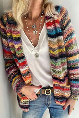 Stripe Print Casual Long Sleeve Sweater Cardigan