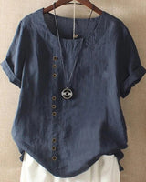 This blouse is shaped with a light, relaxed outline intended for warm conditions. The structure maintains a straight presentation that supports ease of movement during daily routines. The surface remains smooth, providing a balanced look suited for casual summer environments. The form is arranged to create a steady appearance without unnecessary detailing.
