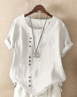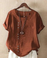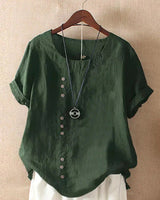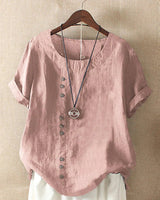 The short sleeves are designed to allow natural arm movement and steady airflow. The neckline and shoulder placement support an even drape across the upper body. The lightweight build helps maintain comfort in warmer temperatures. The overall arrangement keeps the blouse usable across different informal occasions.