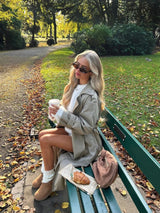 The coat features a double-breasted button closure that ensures secure fastening and adds definition to the overall look. This closure supports everyday practicality while maintaining a classic structure.