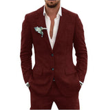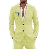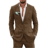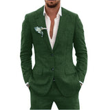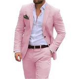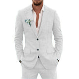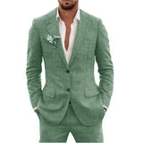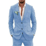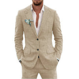 This two-piece suit includes a lightweight jacket and matching trousers. Designed for warm weather, it offers a structured fit suitable for formal daytime events.