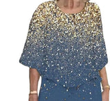 Blue Two-Piece Set with 3/4 Sleeves and Round Neck