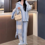 Women’s Knit Two Piece Pant Set with Zipper Sweater Coat and Wide Leg Pants