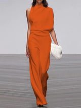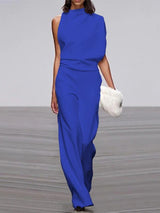 This wide-leg jumpsuit offers a balanced blend of comfort and structure for daily wear. Its smooth lines and flattering cut create a streamlined shape that supports natural movement throughout the day. The sleeveless upper section and elongated leg design contribute to a clean, uninterrupted silhouette suitable for routine activities or relaxed outings.