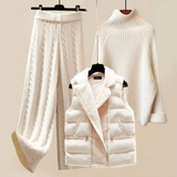 Women's Cozy Knit Three Piece Sweater and Wide Leg Pants Set — Effortless Warmth, Elegant Comfort