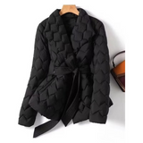 Women's Lightweight Quilted Cotton Jacket with Lapel and Tie Waist