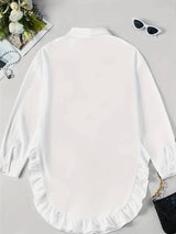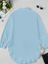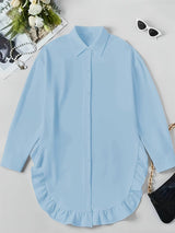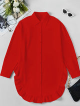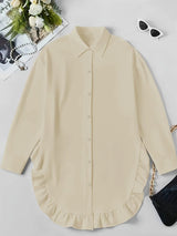 WOMEN'S PLAIN RUFFLE TRIM BUTTON FRONT BLOUSE SPECS
