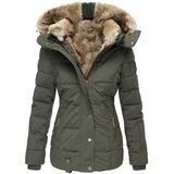 Women's Slim Fit Hooded Cotton Coat with Wool Collar — Stay Warm, Look Chic
