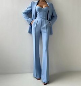 Women's Three Piece Autumn Suit Set with Blazer, Corset Pants, and Camisole Top