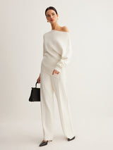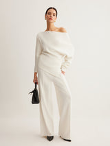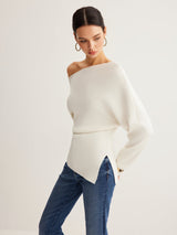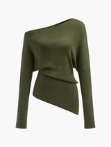 Wool-Blend Asymmetrical Neck Knit Top